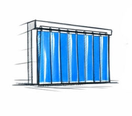 Manufacture of tent halls, storage tents, and temporary PVC structures. The FIAB 1400L S, with its programmable head travel function, is ideal for producing PVC film windows (Crystal), ensuring neat and airtight seams.