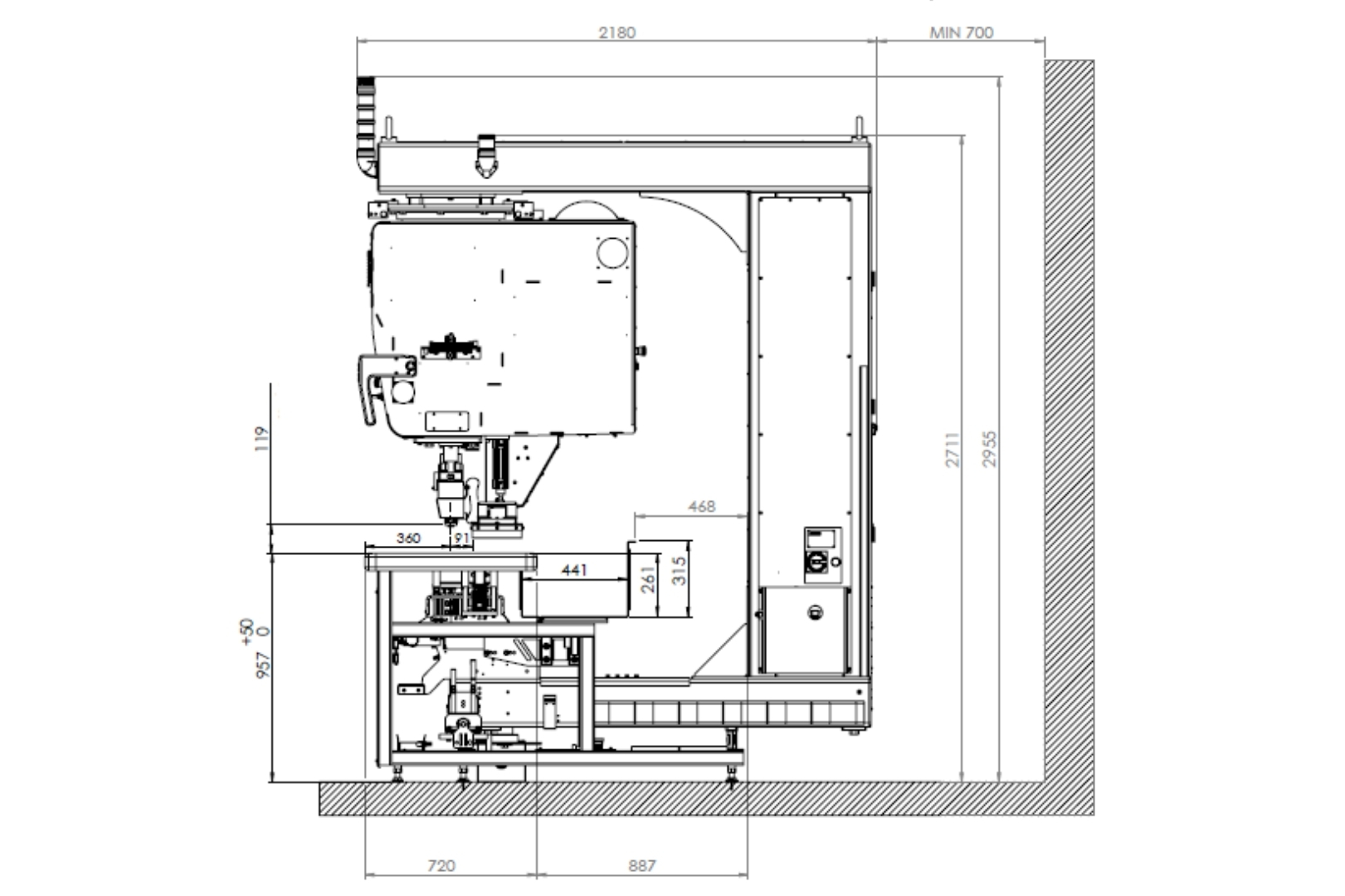 The machine is installed in a арнайы pit below floor level, allowing the working surface to align with the production floor. This solution greatly facilitates handling large and heavy materials and significantly improves operator ergonomics.