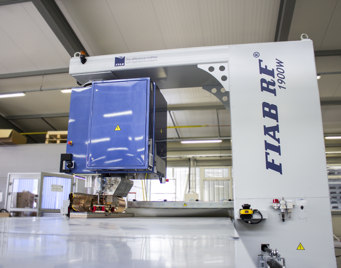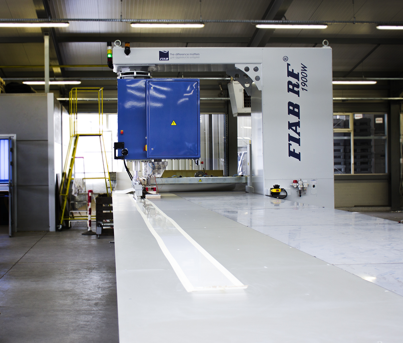 This is a welding machine of considerable dimensions (3362x3517x2798cm), which is why FIAB dedicates it to manufacturers who in their daily work join large-format material parts. The larger dimensions of the machine allow for comfortable work with, for example, large banners and billboards. The weight of this model without the rail track is approximately 4 tons.