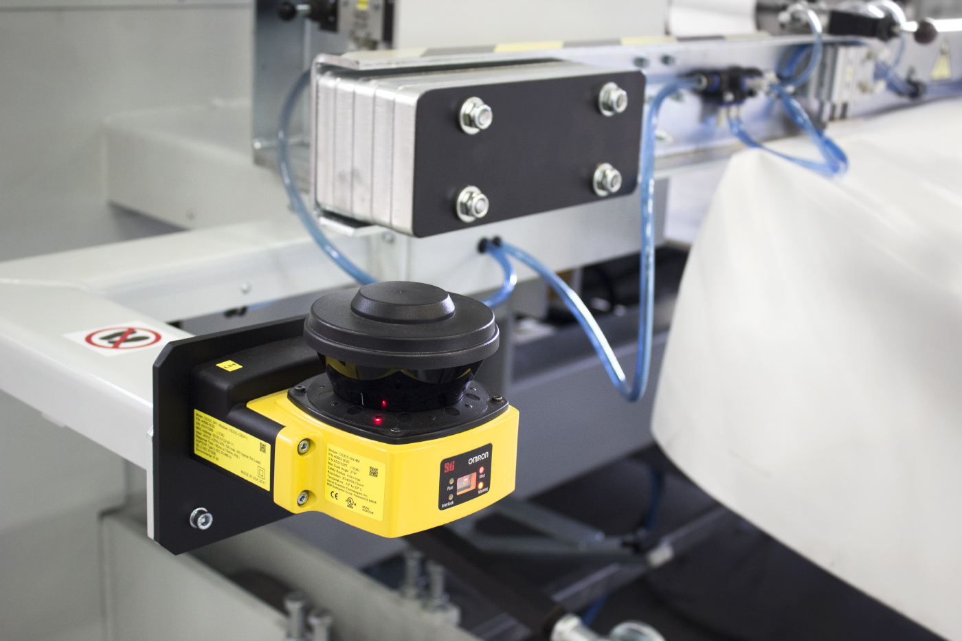 The FIAB 1900W is equipped with obstacle detection scanners - if someone enters the scanner zone, the machine will stop immediately. Two servo drives are used as the drive system in the machine.