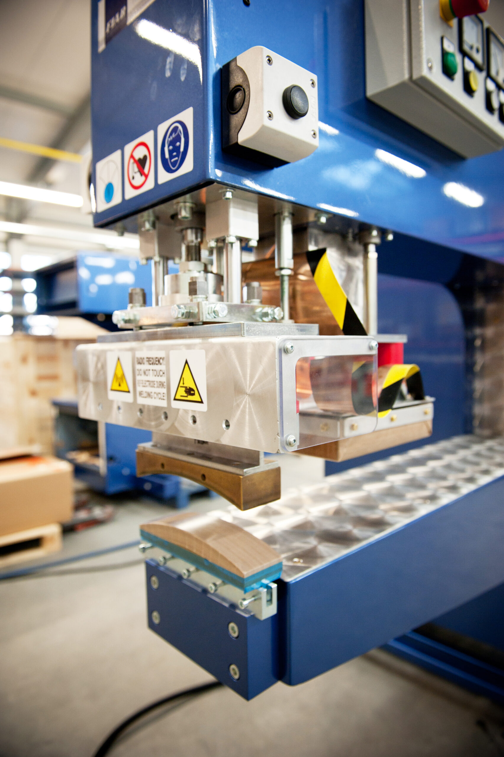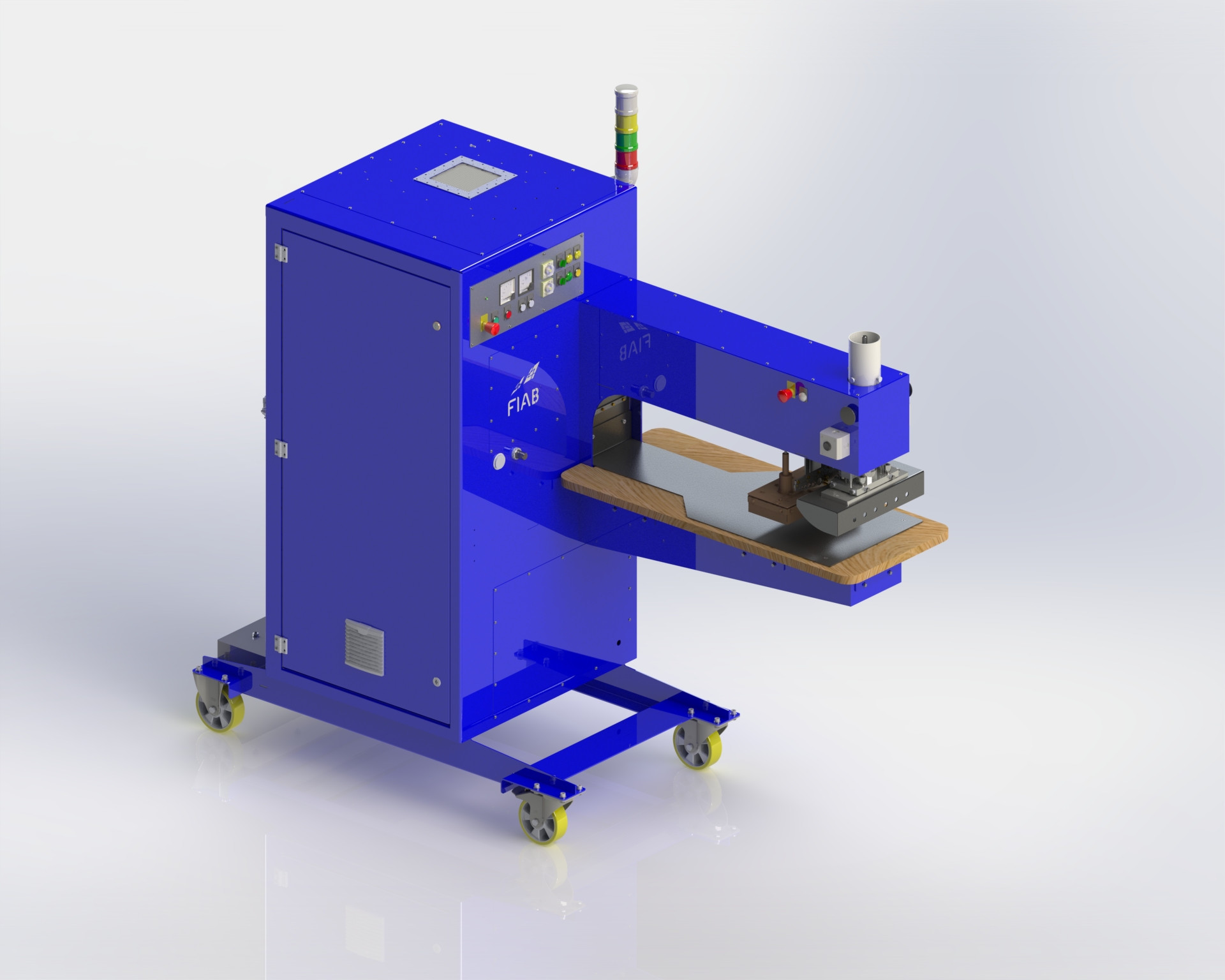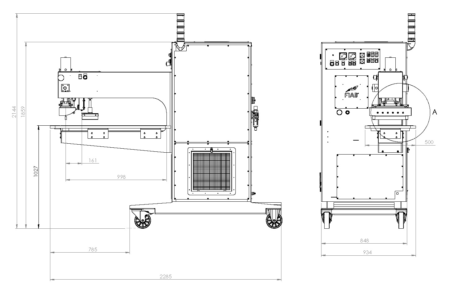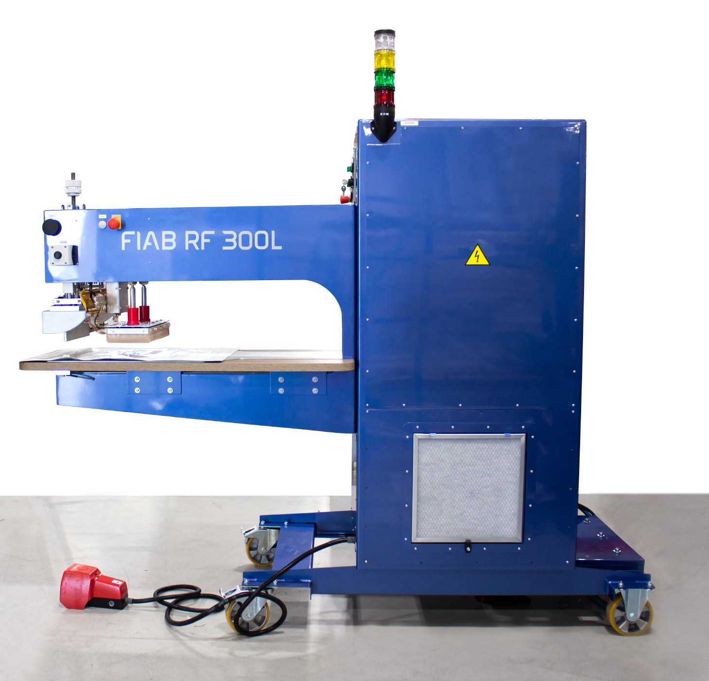 The FIAB 360L stationary welding machine is a model based on the FIAB 300 machine, designed for production improvement. It has a longer neck with greater space between the press and the chassis. This solution allows for easier material handling.