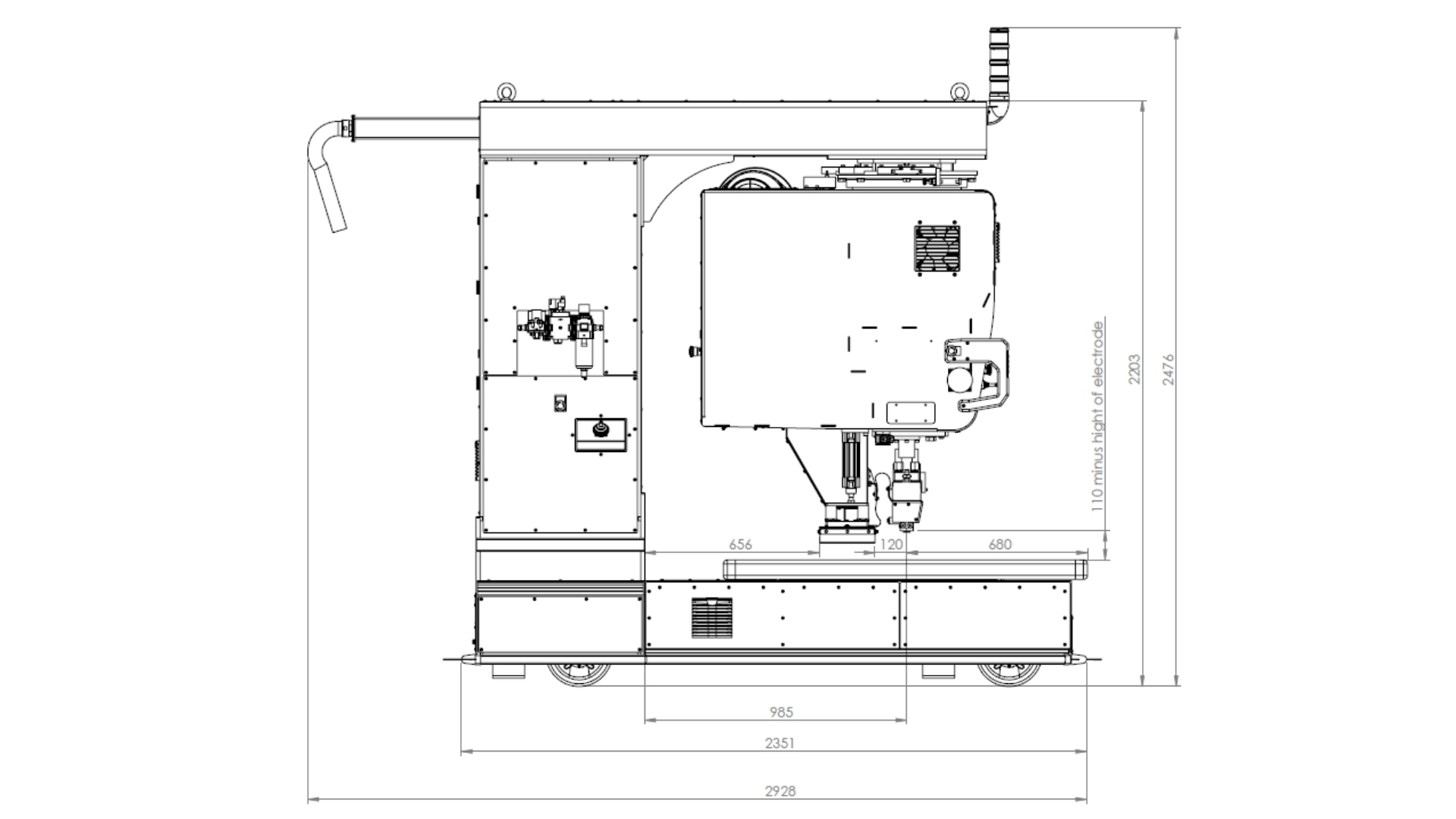 With the HPS Q-Drive, you no longer need to maneuver the material itself – this is a welding machine that moves through the hall to wherever you need it.