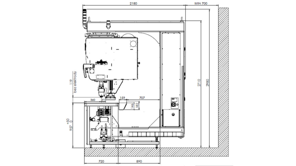 Dzięki innowacyjnej konstrukcji operator może ustawić się bezpośrednio za elektrodą – od środka maszyny – co znacząco poprawia kontrolę nad procesem zgrzewania, szczególnie na dużych powierzchniach.