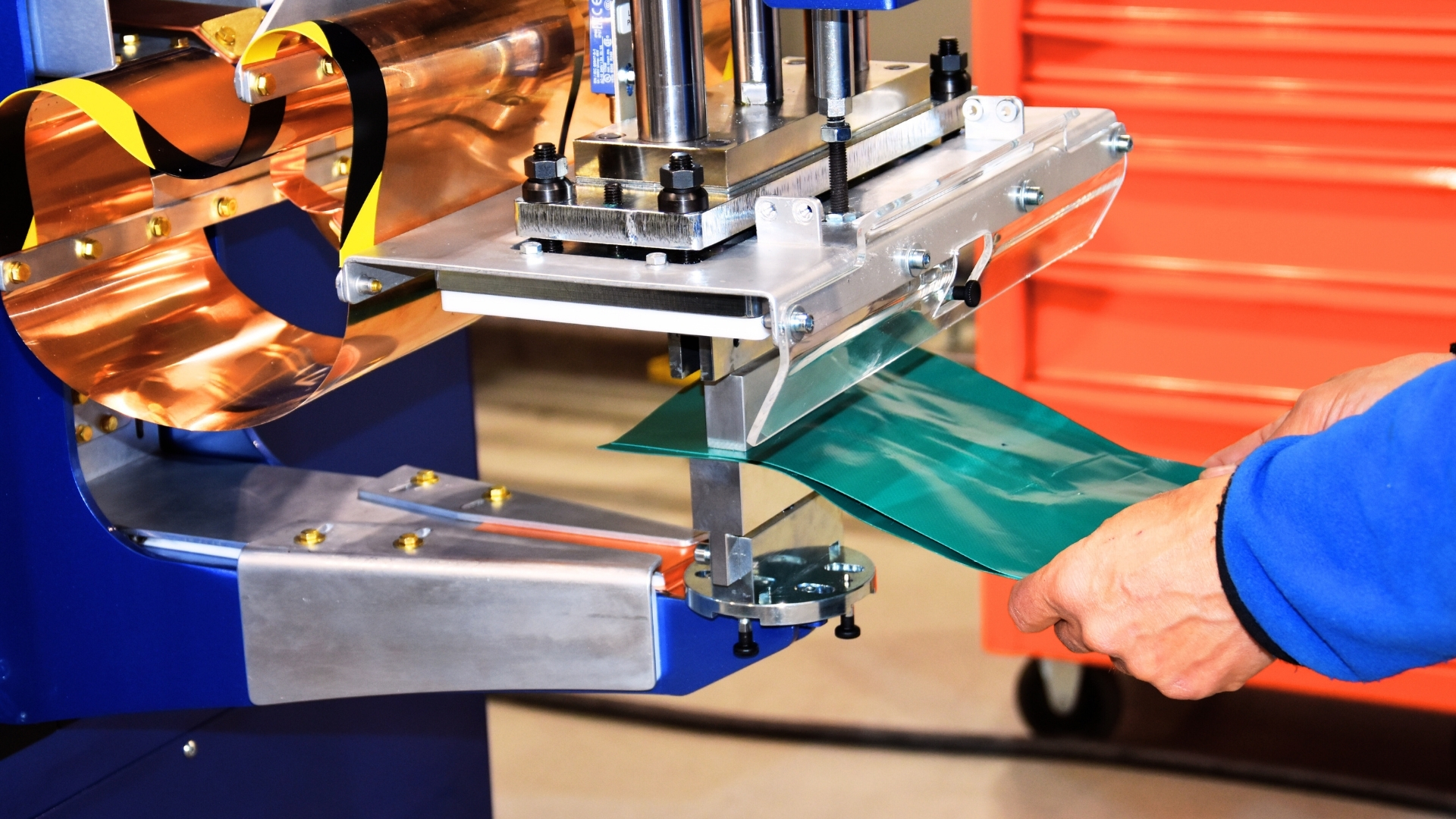 Idealnie sprawdza się w procesach takich jak zamykanie tub, zgrzewanie elementów okrągłych oraz precyzyjne łączenie wzmocnień, usztywnień i detali — szczególnie w produkcji wyrobów pneumatycznych, konstrukcji technicznych i produktów specjalistycznych.